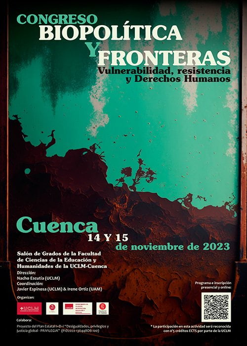 La Universidad de Castilla-La Mancha (UCLM) promueve el Congreso “Biopolítica y Fronteras: vulnerabilidad, resistencia y derechos humanos”, que se celebrará en el Campus de Cuenca los días 14 y 15 de noviembre con el propósito de generar un espacio de reflexión sobre cuestiones tan relevantes en el contexto nacional e internacional como la invasión de Gaza, la crisis migratoria o la vigencia de la Declaración Universal de los Derechos Humanos. Organizado por la Facultad de Ciencias de la Educación y Humanidades conquense, el Departamento de Filosofía, Antropología, Sociología y Estética y el Patronato Universitario Gil de Albornoz, el encuentro estará dirigido por el profesor de la UCLM Nacho Escutia, quien justifica su carácter oportuno aludiendo precisamente a una realidad que requiere “el análisis de las dinámicas y dispositivos a través de los cuales la política piensa y conduce la vida humana, así como las posibilidades de gobernar nuestras vidas, entornos y sociedades que nos ofrece la articulación democrática”.