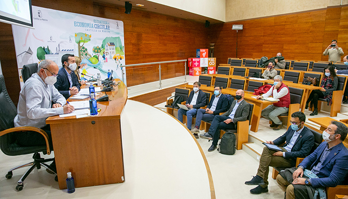 Durante la puesta en común, análisis y seguimiento de las acciones que se están realizando en materia de economía circular en este 2021, el consejero ha querido destacar las que ha considerado más representativas, “además de innovadoras” en esta Comisión, creada en mayo del año 2020 y que tiene como función principal coordinar y colaborar en la adopción de medidas para el cumplimiento de los objetivos y principios de la Ley de Economía Circular de Castilla-La Mancha.