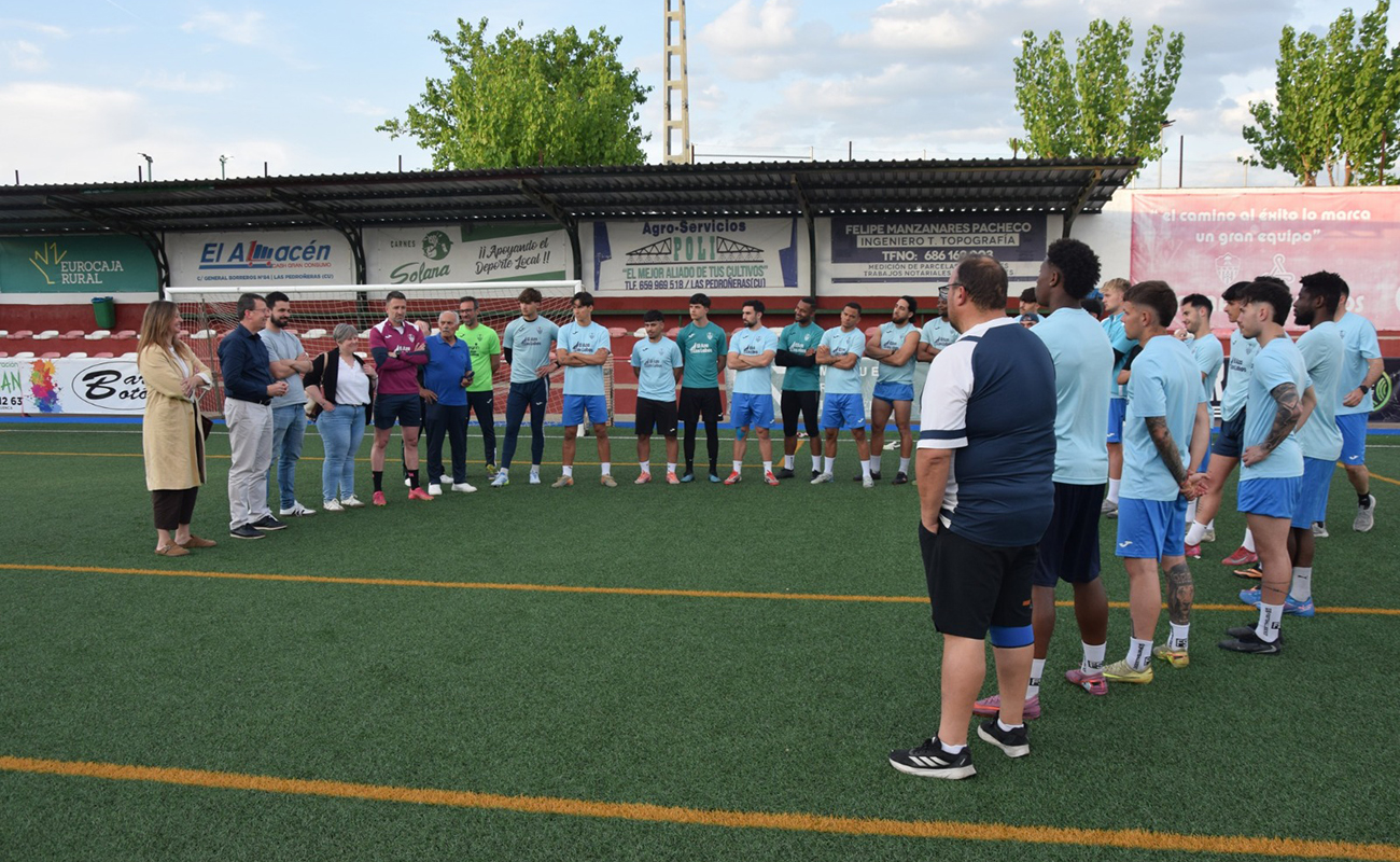 Durante la visita, Martínez ha trasladado el respaldo del Gobierno regional al CD Las Pedroñeras, que esta temporada compite en Tercera RFEF y afronta la recta final del campeonato con el objetivo de lograr la permanencia.