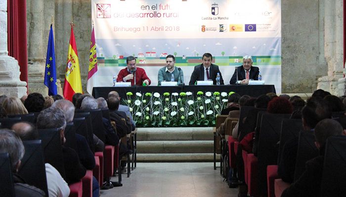 Acompañado del alcalde de Brihuega, Luis Manuel Viejo; el presidente de RECAMDER, José Juan Fernández y el presidente de REDR, Aurelio García; el consejero ha señalado, ante los más de 200 personas, miembros de los Grupos de Desarrollo Rural, técnicos, alcaldes y concejales, organizaciones agrarias, asociaciones de mujeres o empresarios y promotores, que la gestión del medio rural enfocado a que la gente pueda vivir en medio rural “es la clave”, ya que “sin gente no hay medio rural y es en lo que trabajamos todos los días”.