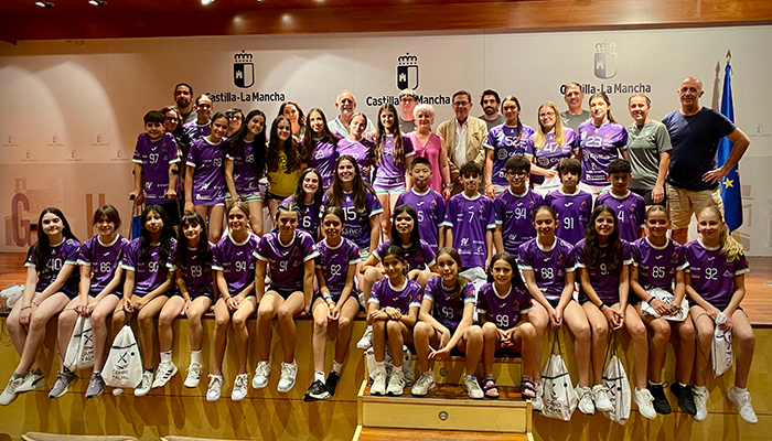 La delegada de la Junta en Guadalajara, Rosa María García, ha recibido esta tarde en el salón de actos de la sede del Gobierno regional a una representación de jugadores y jugadoras de los equipos base del Club Balonmano Guadalajara que han alcanzado fases finales durante esta temporada, acompañados por sus entrenadores, miembros del staff técnico y familiares.