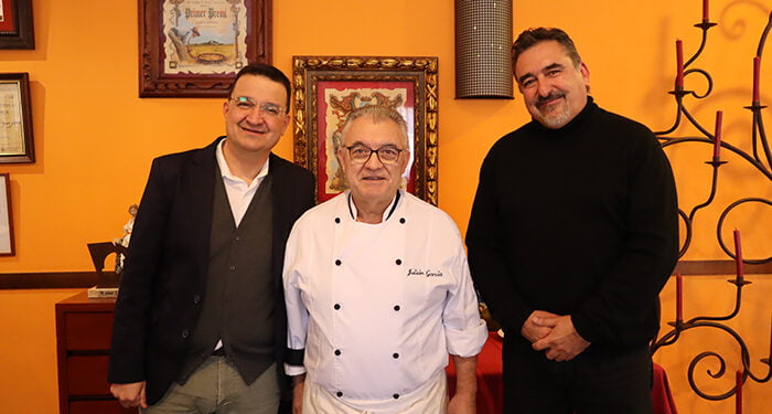 El consejero de Agricultura, Agua y Desarrollo Rural, Francisco Martínez Arroyo, ha visitado este miércoles el restaurante Posada Real, de Santa María del Campo Rus (Cuenca), uno de los establecimientos galardonados con un Broche Gastronómico del Medio Rural 2022, que concede la Academia de Gastronomía de Castilla-La Mancha. Martínez Arroyo, que estaba acompañado por el delegado de Agricultura, Agua y Desarrollo Rural en Cuenca, Joaquín Cuadrado, ha puesto en valor el trabajo de Julián García, y ha avanzado que está trabajando para que este establecimiento sea certificado como Restaurante Dieta Mediterránea, por la Fundación que él preside, para seguir impulsando la actividad económica de municipios de nuestro medio rural.