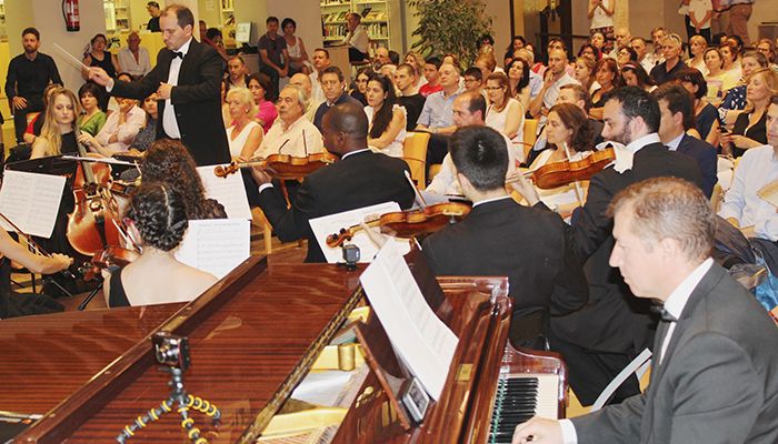 El patio de la Biblioteca Pública de Guadalajara ha presentado un lleno absoluto para asistir al estreno de la Suite Francisca de Pedraza, un concierto a cargo de la Filarmónica Cervantina de las 25 Villas (OFC25V), que ha llegado a Guadalajara de la mano del Gobierno de Castilla-La Mancha.