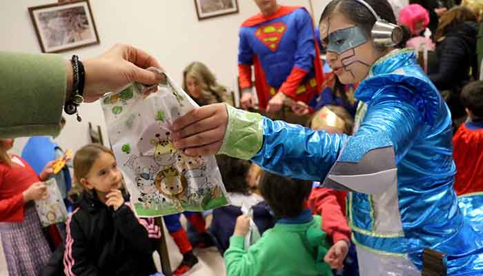 Ayer sábado, la lluvia cayó fina pero constantemente durante toda la mañana. Por este motivo, el concurso de disfraces se celebró en el Ayuntamiento de Pareja. Más de 50 parejanos, niños y mayores, participaron en él. Y para cada uno de ellos, hubo un detalle de participación.