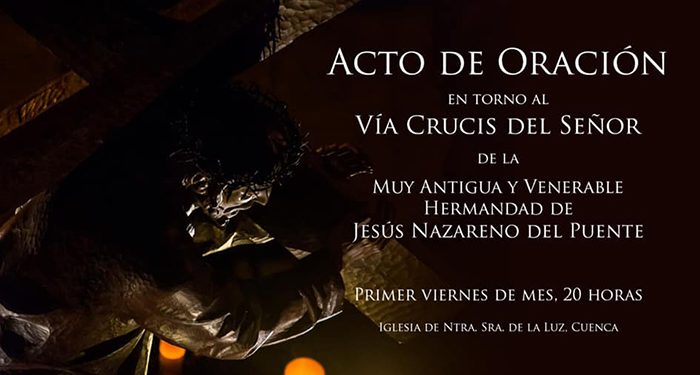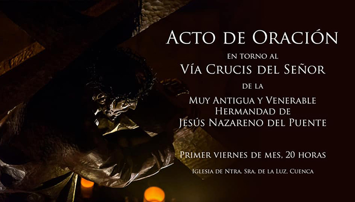 El Acto de Oración – cuya primera edición es este viernes 1 de octubre – tendrá lugar el primer viernes de cada mes a las 20 horas y en la iglesia de la Virgen de la Luz, en la que la Hermandad tiene su sede canónica. El Vía Crucis será el hilo conductor de este Acto de Oración, de manera que cada mes se reflexionará sobre una de las estaciones.