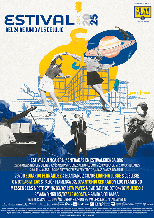 La decimocuarta edición de Estival Cuenca desvela el cartel gráfico que acompañará su programación este verano. Con dirección artística de José An. Montero y creado por la artista visual y collagista analógica mexicana Nereida Dusten, el cartel de 2025 sintetiza la identidad del festival: su arraigo en el paisaje conquense, su carácter inclusivo y su defensa de la música como impulso vital.