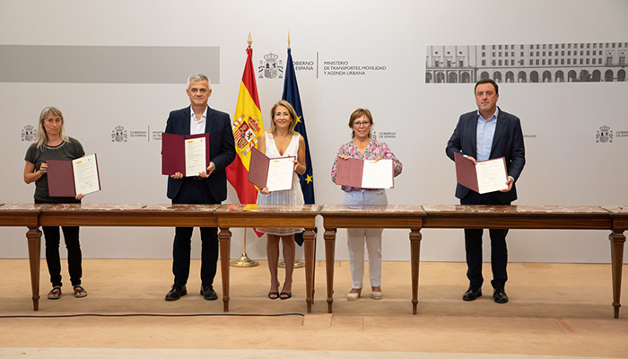 La Secretaría General de Agenda Urbana y Vivienda del Ministerio de Transportes, Movilidad y Agenda Urbana y la Mancomunidad de Municipios Alto Tajo (Guadalajara) han firmado en la sede del Ministerio el Protocolo de Actuación de la Agenda Urbana del Alto Tajo. La Ministra Raquel Sánchez, el Secretario General, David Lucas Parrón, y la Presidenta de la Mancomunidad, Esther Rubio, han sido los protagonistas de esta rúbrica, que supone un reconocimiento al proyecto que está desarrollando este territorio rural de la provincia de Guadalajara.
