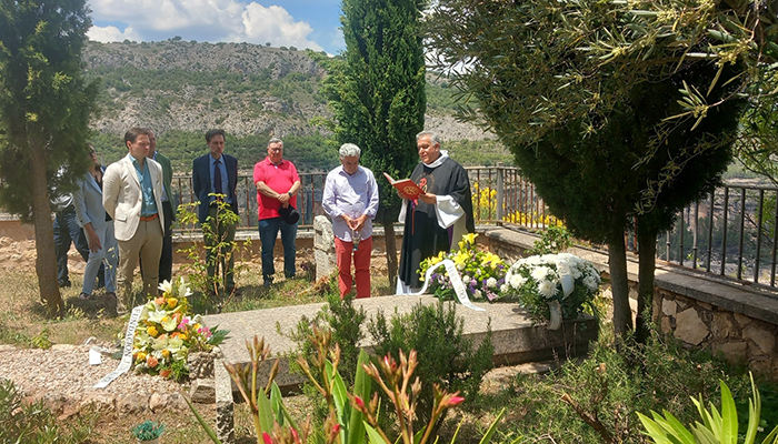 Finalizada la misa, los asistentes se acercaron al camposanto de Personalidades Conquenses, donde Ramón Page rezó un responso en la tumba de Fernando Zóbel, cuajada de los ramos florales que habían adornado los pies del altar.