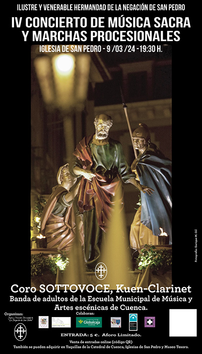 Días después, el sábado día 9 de marzo a las 19:30 horas, se celebrará el IV concierto de Música Sacra y marchas procesionales a cargo del Coro Sottovoce y la Banda de Música de Adultos de la Escuela Municipal de Música de Cuenca dirigido por Pepe Llopis. Antes del concierto se hará un reconocimiento a la Hermandad del Prendimiento de Jesús en su 120 aniversario.
