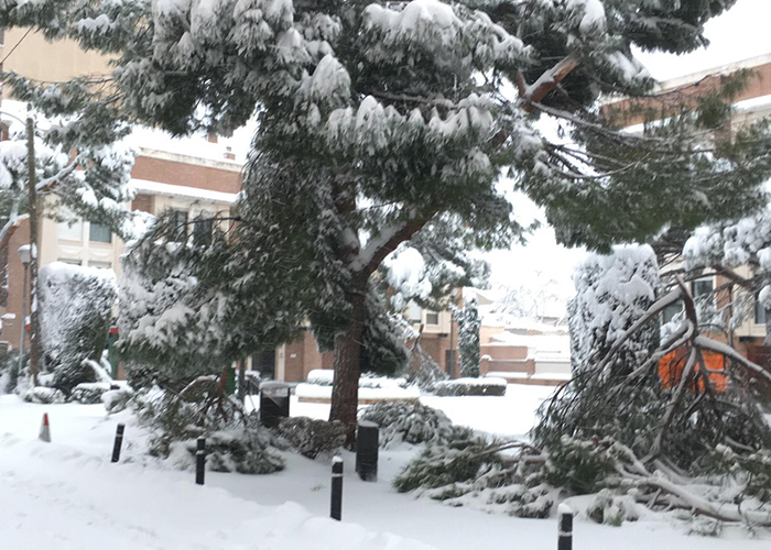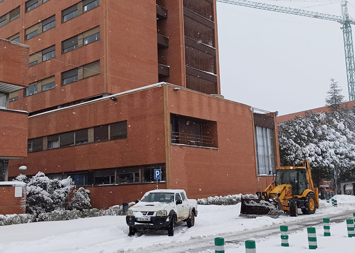 El Ayuntamiento, absolutamente desbordado, ha pedido ayuda a la Junta, a la Diputación y esta mañana también ha pedido la colaboración de la UME para limpiar las calles de hielo y nieve.