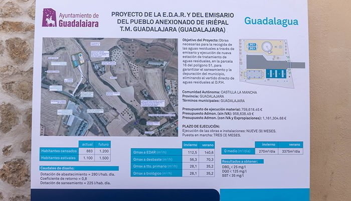 Iriépal verá en las próximas semanas cómo el Ayuntamiento de Guadalajara da respuesta a una “demanda histórica” con el inicio de las obras de construcción de una Estación Depuradora de Aguas Residuales (EDAR), previsto para finales de mayo, con una inversión de 1,1 millones de euros.