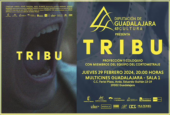El próximo jueves, 29 de febrero, tendrá lugar el estreno en Guadalajara de la película ‘Tribu’, realizada con apoyo de la Diputación de Guadalajara, la Junta de Comunidades de Castilla-La Mancha, el Ayuntamiento de Guadalajara y UNED Guadalajara.