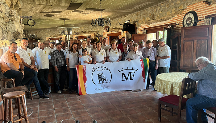El pasado sábado la recién inaugurada Peña Taurina Los Encinares de Málaga del Fresno realizó su primera salida, visitando la ganadería Flor de Jara de Miraflores de la Sierra (Madrid). Alrededor de 30 de sus socios y socias, con gran ilusión, participaron y disfrutaron de una entrañable jornada. Después del almuerzo de bienvenida, con unas vistas privilegiadas de la sierra de Madrid y del pantano de Miraflores de la Sierra, la visita comenzó por el lote de vacas y el semental, asistiendo a continuación al tentadero a campo abierto a cargo del matador francés Dorian Canton. Acto seguido fue el turno de los cercados de toros y novillos, finalizando con la visita a la plaza de tienta y corrales. La comida puso el punto final a un gran día de confraternización, que resultó muy emotivo y cumplió con creces las expectativas.