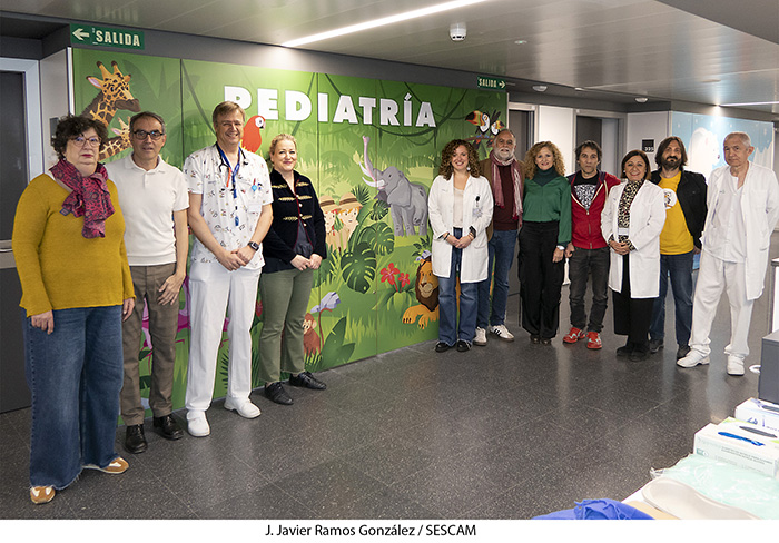 Acompañados por el director de la Escuela de Arte, Luis Sánchez Yela, los diseñadores han explicado cómo se ha trabajado en el imaginario de niños y niñas. En esta ocasión, ha señalado Paula Acebo, los personajes espaciales de las urgencias pediátricas se convierten en exploradores que recorren el mundo y sus paisajes. La nueva Pediatría incluye elementos que dan continuidad respecto a la antigua planta, como la decoración vegetal, los flamencos o los tucanes.
