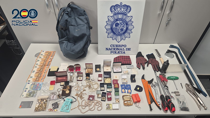 Cuando ambos salían de uno de los edificios y los agentes les dieron el alto, uno de ellos emprendió la huida, arrojando al suelo la mochila que portaba y que contenía numerosas joyas, relojes y útiles para forzar cerraduras. El otro, que también portaba herramientas para el forzamiento de viviendas, fue inmediatamente detenido.