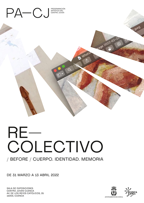 Este jueves 31 de marzo se inaugura dentro de la Programación Artística del Centro Joven (PA-CJ) 2022 la muestra ‘/Before/ Cuerpo. Identidad. Memoria’ de RE-Colectivo. Se trata de una exposición de este grupo de artistas que parte de procesos artísticos colaborativos desarrollados en asignaturas de Grado y Máster en la Facultad de Bellas Artes de Cuenca y que podrá visitarse hasta el 13 de abril en la Sala de Exposiciones del Centro Joven.