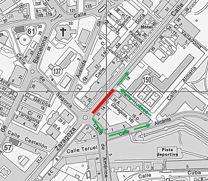 Para ello, el tráfico se cortará durante toda la semana que viene, desde el lunes sobre las 8.00 horas hasta el domingo, de forma parcial en la calle Zaragoza, en el tramo comprendido entre la calle Segovia-América hasta la calle Huesca (únicamente en sentido subida, dirección calle Huesca, ver plano).
