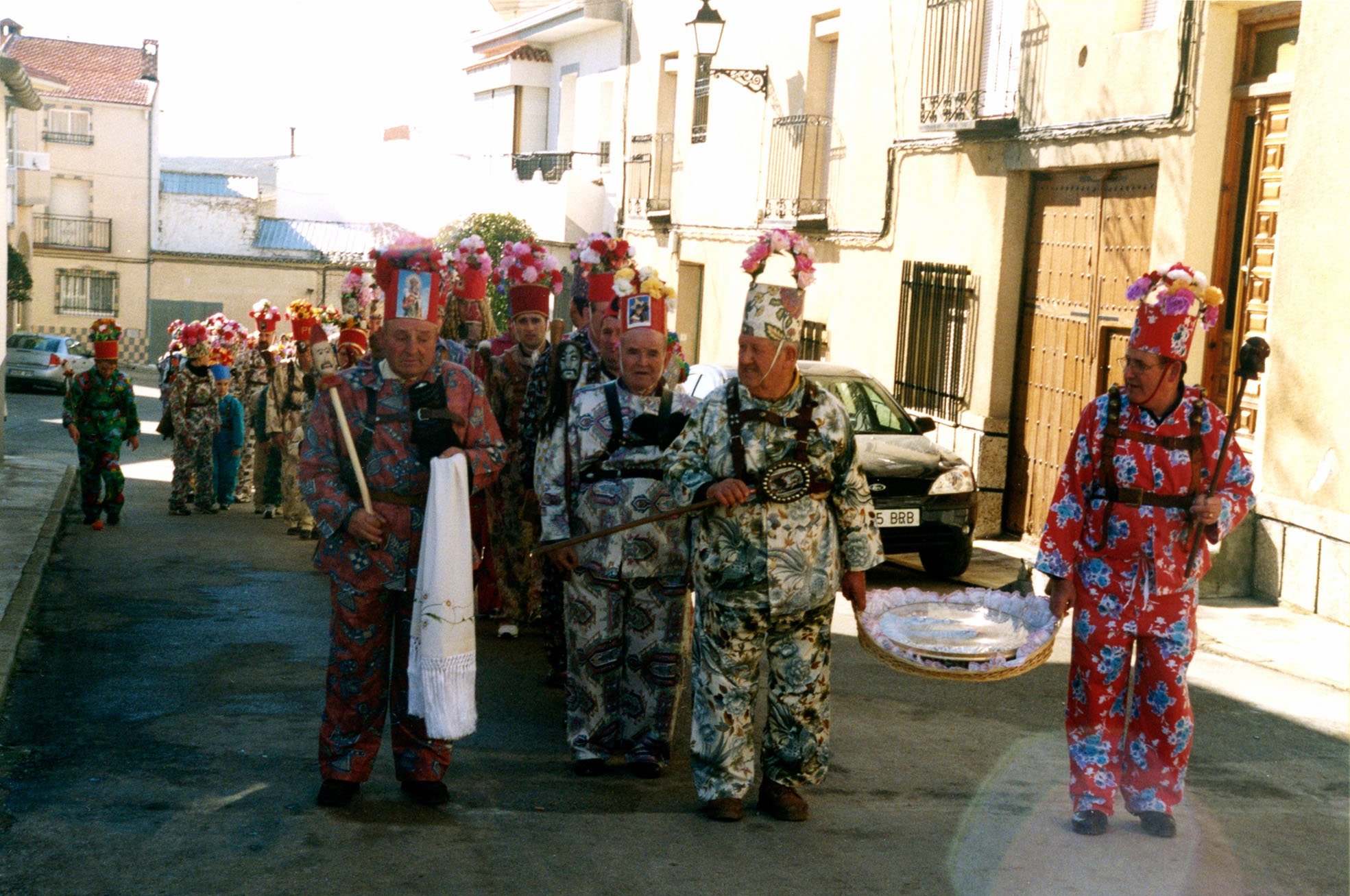 “La necesidad de presentar al Niño Jesús en el templo, pasados los 40 días de su nacimiento, causaba a María, su madre, tanta vergüenza por ser vista por las gentes, al no haber conocido varón, que un grupo de personas de su ámbito familiar, amigos y conocidos, pensaron atraer la atención de las gentes que pudieran estar en su recorrido a la citada presentación, y nada mejor que hacerlo que yendo ataviados de un modo muy colorista, y haciendo mucho ruido con unos cencerros que se colocaron en la espalda…”