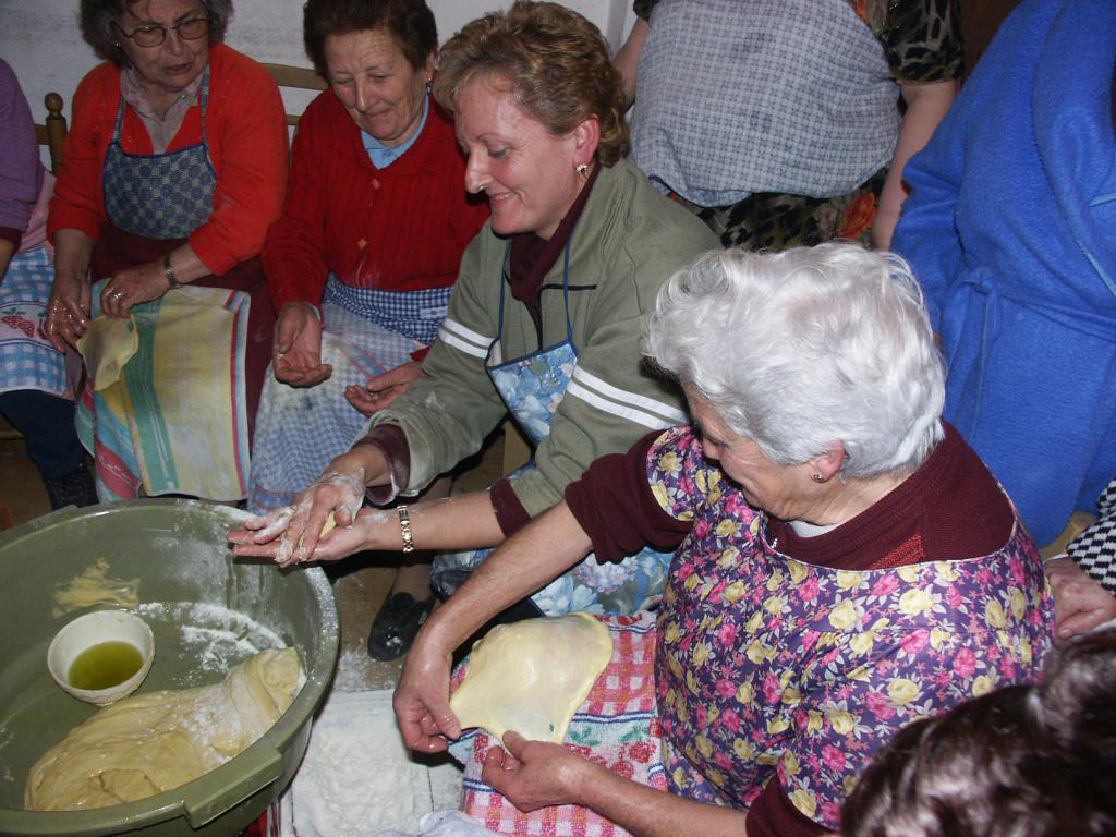 Las mujeres han volcado todo el producto sobre un molde de forma cilíndrica donde irá cogiendo la forma definitiva y, para que la gente lo sepa, Ignacio ha lanzado tres cohetes indicando al pueblo, eso, que una parte de la torta ha sido acabada porque, mañana, serán las campanas las que anuncien el traslado de la misma a la Iglesia. Una jornada en la que, en la noche, habrá luminarias en honor la Virgen de las Candelas, haremos corros alrededor de la hoguera en la que asaremos patatas y carne y tomaremos unos vasitos de una zurra especial recordando a los que, hoy, ya no están con nosotros, dice Filda.