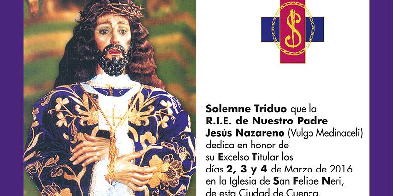 El 4 de marzo, desde las 8 de la mañana y hasta las 22 horas, los fieles y hermanos del Medinaceli que lo deseen podrán participar en la adoración y besapié a la Sagrada Imagen en San Felipe, uno de los actos cuaresmales más multitudinarios de la capital conquense (junto con el besamanto a las Angustias del Santuario) y por el que pasan cada año miles de personas.