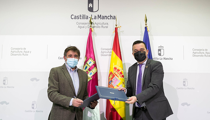 El consejero de Agricultura, Agua y Desarrollo Rural, Francisco Martínez Arroyo, así lo ha indicado esta mañana tras la firma del convenio de colaboración, que ha suscrito en calidad de presidente del Instituto Regional de Investigación y Desarrollo Agroalimentario y Forestal de Castilla-La Mancha (IRIAF), con el presidente de la Asociación de Ganaderos de Raza Ovina Alcarreña (AGRAL), Jesús Colmenar, para impulsar el mantenimiento de esta raza autóctona en peligro de extinción y su sostenibilidad en el medio rural de la comarca de La Alcarria.