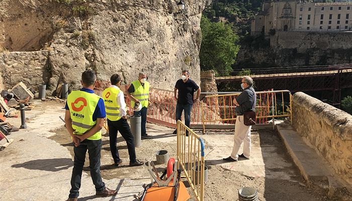 Dolz ha recordado durante su visita que las obras de saneamiento y estabilización del muro se declararon de emergencia por parte del Consorcio de la Ciudad de Cuenca, lo que permitió que empezaran el 17 de mayo, apenas cinco días después del derrumbe de parte de la calle el día 12 de mayo, mientras se estaban llevando a cabo los trabajos de reparación del mismo.