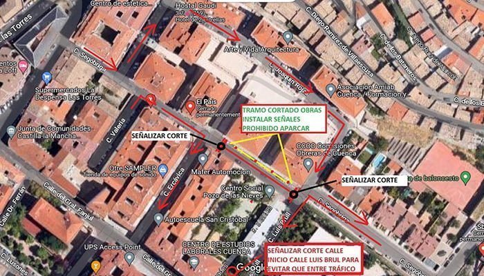 Los trabajos de reparación del colector de saneamiento de la calle Segóbriga con la tecnología de manga continua interior implican este miércoles 12 de abril el corte del tramo de esta vía entre Luis Brull y Ercávica desde las 9,00 a las 16,30 horas aproximadamente, por lo que se recomienda a la ciudadanía que evite en la medida de lo posible pasar por esta zona para acceder al centro de la ciudad.