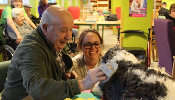 Un servicio que se lleva prestando una vez a la semana por parte de la empresa Gudcan desde 2019 y que tiene como principal objetivo trabajar distintos aspectos emocionales de los mayores con ayuda de ‘Febrero’ el perro cuya visita esperan con alegría los usuarios.