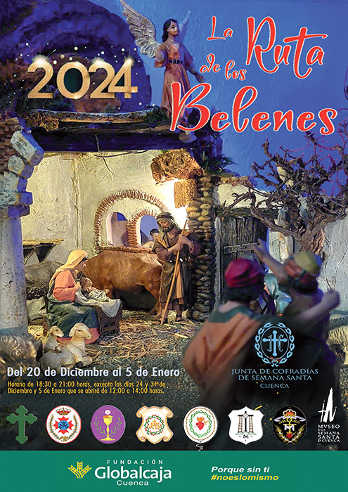 Organizada por la JdC, el Museo de Semana Santa y las hermandades participantes, la Ruta atrae cada año a miles de personas. Esta edición se inaugurará y bendecirá el próximo 19 de diciembre en el Museo de Semana Santa a las 20 horas, con la asistencia y bendición por parte del obispo de la Diócesis de Cuenca, monseñor José María Yanguas. Los belenes se podrán visitar del 20 de diciembre de 2024 al 5 de enero de 2025, en el horario habitual de la Ruta: de 18:30 a 21 horas, salvo los días 24 y 31 de diciembre y 5 de enero, en que el horario de visita será de 12 a 14 horas. Algunas hermandades abren su belén al público unos días antes. Es el caso, por ejemplo, del belén de la V. H. de Ntra. Sra. de la Soledad (del Puente), que se inaugura tradicionalmente el 8 de diciembre.