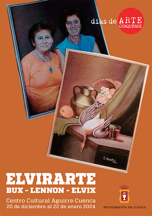 Dentro del proyecto de días de ARTE CONQUENSE, organizado desde la Concejalía de Cultura del Ayuntamiento de Cuenca y coordinado por Carlos Codes, se inaugura en la sala de exposiciones del Centro Cultural Aguirre de Cuenca ELVIRARTE este 20 de diciembre, exposición que se extenderá hasta el 22 de enero de 2024.