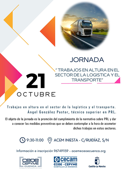 La jornada titulada ‘Trabajos en altura en el sector de la logística y el transporte’ comenzará a las 9:30 horas y abordará los aspectos más importantes para la prevención de accidentes en este sector.