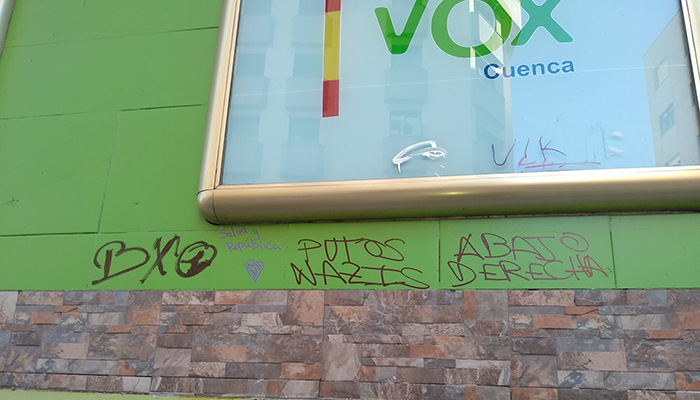La secretaria provincial de Vox Cuenca, María Esther de la Cruz, ha denunciado que la nueva sede de VOX en la capital ha aparecido con pintadas en un ataque más hacia esta formación política.