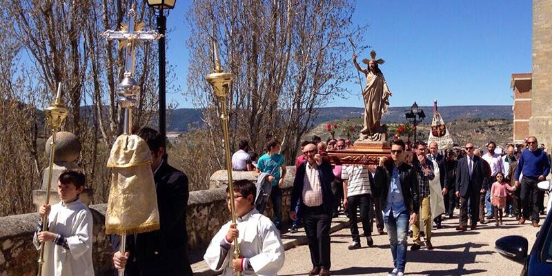 13:00h.- Santa Misa y Tradicional Procesión del Encuentro, nos acompañará la charanga “Alegría Alcarreña”. A continuación quema del “Judas” en la Plaza.  Ambas declaradas de INTERÉS TURÍSTICO PROVINCIAL por la Excma. Diputación de Guadalajara.