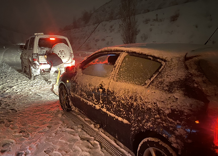 Cuando los copos de nieve empezaron hacer acto de presencia y los coches empezaron a quedarse tirados en la carretera, los trabajadores en sus puestos de trabajo o no poder llegar a los mismos, este grupo de 4 x 4 se puso en coordinación con diferentes cuerpos de seguridad y protección civil para ayudar, sobre todo, en el rescate de vehículos. Así, el viernes, hasta las tres de la mañana, miembros de Endeblaquetavia estuvieron sacando coches atascados de la nieve en las inmediaciones de Yebes-Valdeluz, su centro de acción, pero llegando hasta Tendilla o Guadalajara.