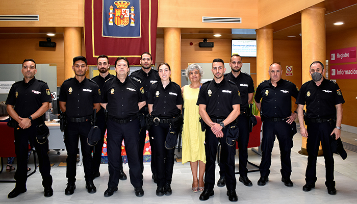 La subdelegada del Gobierno de España en Cuenca, Mª Luz Fernández, acompañada por el jefe de la Comisaría Provincial, José Luis Serrano, y el jefe de la Brigada de Seguridad Ciudadana, Francisco Collado, ha dado la bienvenida a los seis policías nacionales que se han incorporado en periodo de prácticas a la Comisaría Provincial, así como al subinspector, natural de Cuenca, que acaba de tomar posesión como personal fijo en dicha comisaría.