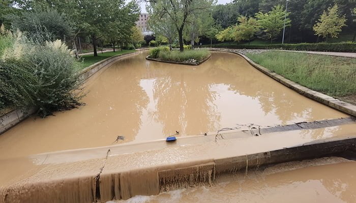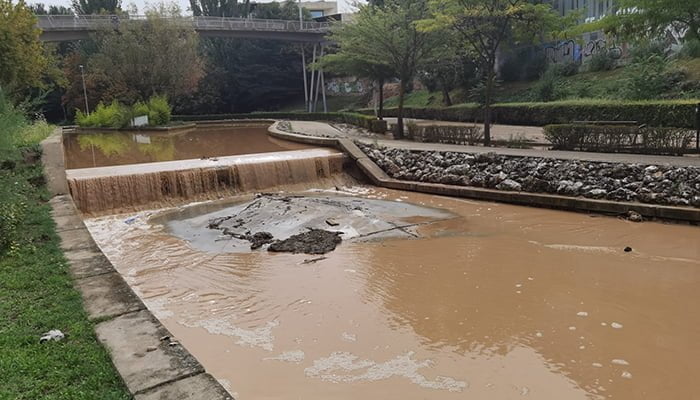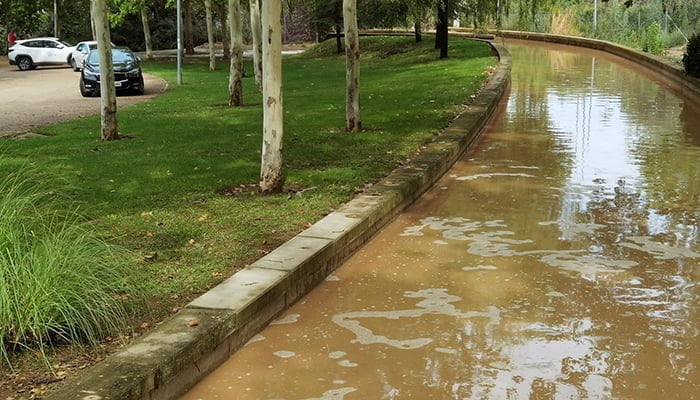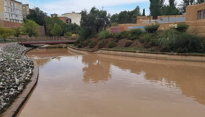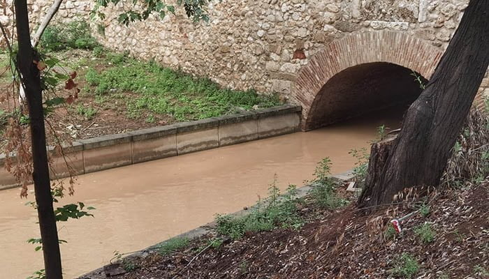 Las lluvias caídas durante la madrugada del viernes ha llenado de nuevo el río del barranco del Alamín, sin agua desde la última gran tormenta que asoló por completo la estructura de hormigón del río.