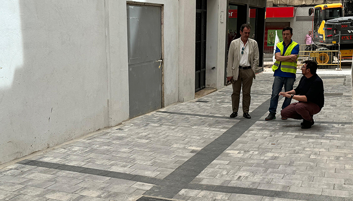 La Travesía de Sánchez Vera “estrena” el pavimento que se colocará en la zona centroUna visita que se debe, según ha explicado Adrián Martínez, a que “estamos ultimando la actuación que se está llevando a cabo en dicha zona”, recordando que “tuvimos que declarar de emergencia las obras por la rotura de un colector para cuya ejecución se ha tenido que levantar todo el callejón y parte de la calle Sánchez Vera”.