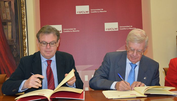El rector de la Universidad de Castilla-La Mancha (UCLM), Miguel Ángel Collado; y el secretario de la Real Academia de Ingeniería (RAI), Antonio Colino, han firmado un convenio de colaboración por el que ambas partes se comprometen al fomento de las vocaciones en estudios de Ciencia, Tecnología, Ingeniería y Matemáticas (STEM) y al refuerzo de la vocación técnica en los futuros estudiantes universitarios.