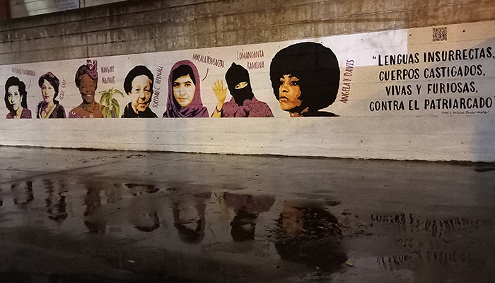 El mural MUJERES HISTÓRICAS es obra del colectivo Histéricas Conectivas, que en 2021 decidió sumarse al movimiento reivindicativo feminista que condenaba la vandalización del mural de mujeres en Ciudad Lineal (Madrid). Los rostros de Angela Davis, Silvia Federici, Antonia Fontanilla, Alice Guy, Soledad Casilda Hernáez, Wangari Maathaic, Rosa Parks, la Comandanta Ramona y Malala Yousafzai componen el elenco multirracial de esta pieza artística.