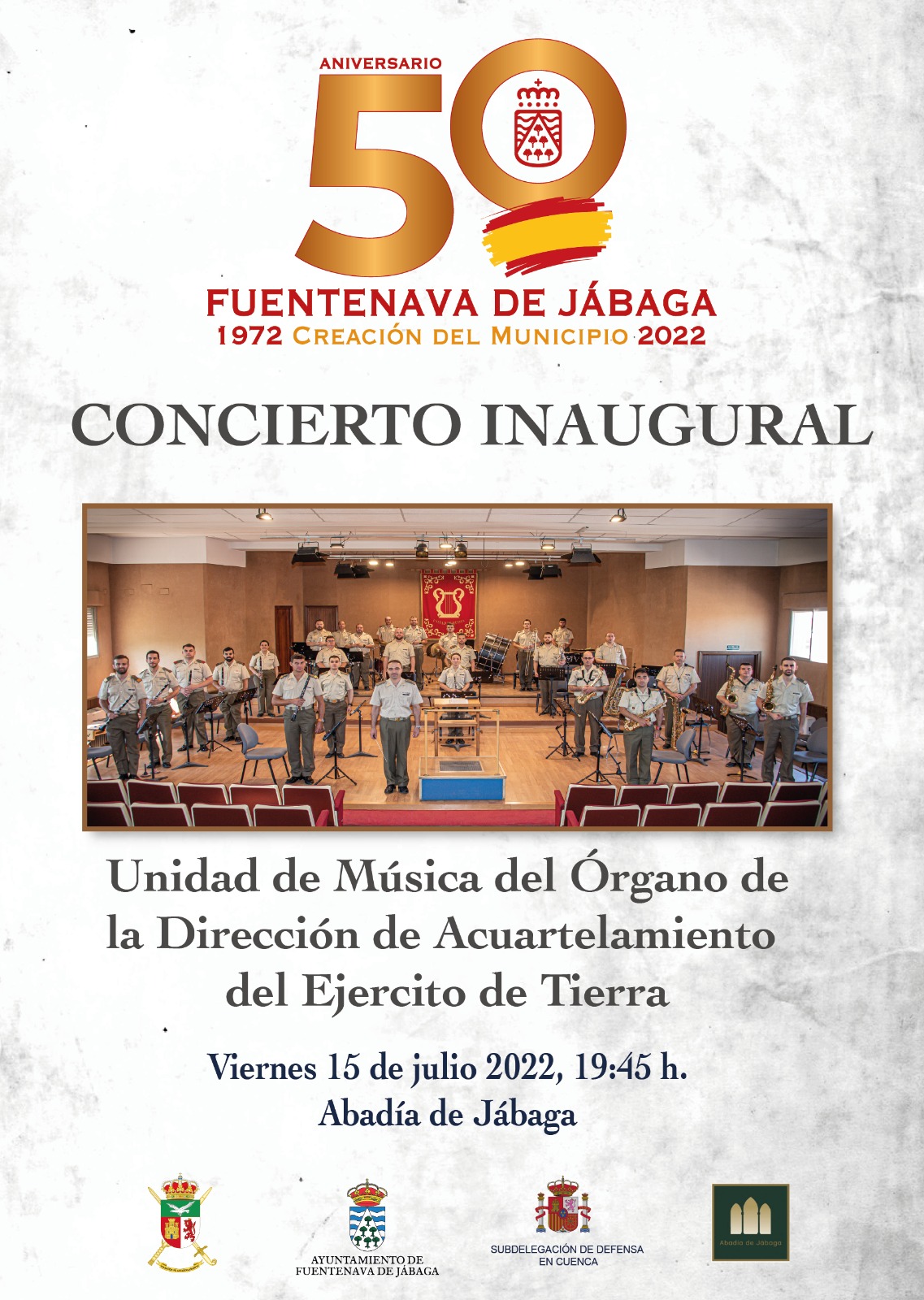 Bajo la Presidencia de Honor de Sus Majestades, los Reyes de España, comienzan este viernes, día 15 de Julio, los actos conmemorativos del 50 Aniversario de la creación del Municipio de Fuentenava de Jábaga bajo el lema “Municipalismo  Rural, 50 Años Juntos”, con el concierto que, en colaboración con la Subdelegación de Defensa, interpretará en los jardines de la Abadía de Jábaga la Unidad de Música de la Dirección del Acuartelamiento del Ejército de Tierra de Madrid, bajo la dirección del capitán Andrés Jiménez. Un conquense que inició su formación en las bandas de Horcajo de Santiago y de Mota del Cuervo y que posee el título superior de las especialidades de oboe y composición. Desde el año 2013, que ingresa por concurso oposición en la escala de oficiales del cuerpo de música militares, dirige las del img 20220704 wa0014Cuartel San Marcial de Burgos, la de la Academia de Infantería de  Toledo y, desde hace un año, la Unidad de Música de la Dirección de Acuartelamiento heredera de las cuatro músicas del Regimiento de Ingenieros, adscrita a la División Mecanizada Brunete, número 1, hasta que en 1998 se encuadra dentro del batallón del Cuartel General de la Región Militar Centro, en el 2005 se incorpora a la Subinspección General del Ejército con el nombre de Unidad de Música de la 1ª SUIJE y, por fin, en el 2011, se presenta con su actual nombre: Unidad de Música de la Dirección de Acuartelamiento que, mañana viernes, a partir de las 19:45 horas, interpretará el siguiente repertorio: