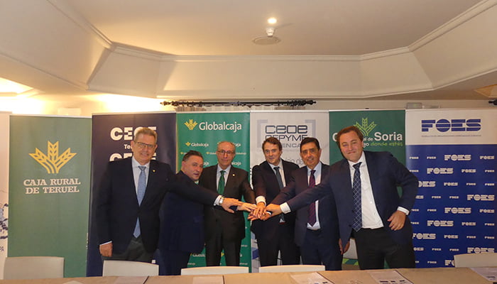 CEOE Cepyme Cuenca, FOES y CEOE Teruel han renovado el convenio de colaboración que la Red SSPA mantiene con Globalcaja, Caja Rural de Soria y Caja Rural de Teruel para luchar contra la despoblación y revertir la situación en las tres provincias.