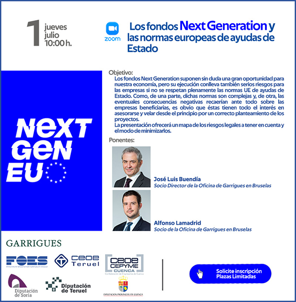 Este evento es vital para las empresas ya que, a la vez que estos fondos son una gran oportunidad, también su ejecución conlleva grandes riesgos si no se respetan plenamente las normas de la Unión Europea sobre ayudas de Estado.