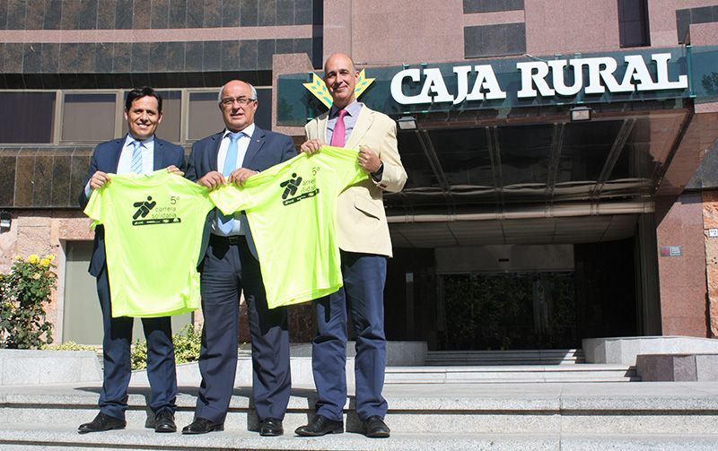El gerente de la Fundación, Vicente Muñoz, entregó la camiseta de la Carrera al presidente de UTECO, Encarnación Majano, y su gerente, José María Manzanilla, en la sede central de Caja Rural Castilla-La Mancha, en la calle Méjico de Toledo, donde tendrá su salida y llegada la Carrera.