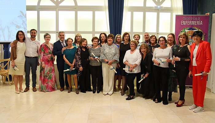 Pero además y como es tradición, esta celebración sirvió para homenajear a los profesionales de la Enfermería que se retiran y a quienes se les hizo entrega de un diploma e insignia de oro en señal de agradecimiento por su trayectoria profesional. Las galardonadas fueron Mª de los Ángeles Arroyo de Lucas, Carmen Cruz Gómez Sánchez, Inmaculada Moratilla Martínez, Vicente Navarré Gimeno, Concepción de Mur Figuera, Antonia Muñoza Orellana, Mª Carmen Arizaleta Nieva, Carmen Sagrario Morales de Juan, Clotilde Martínez García, Mª de los Ángeles Barriopedro López, Mª Carmen Yagüe Guerrero, Mª Cruz Encabo Rodríguez, Mª del Carmen Bernardo Santamaría, Mª de la O Abad de Agustín y Carmen Sabroso Alcázar. Igualmente, se hizo el reconocimiento a los colegiados que han cumplido 25 años colegiados consecutivos en el Colegio Oficial de Enfermería de Guadalajara, entregándoles la insignia de plata.