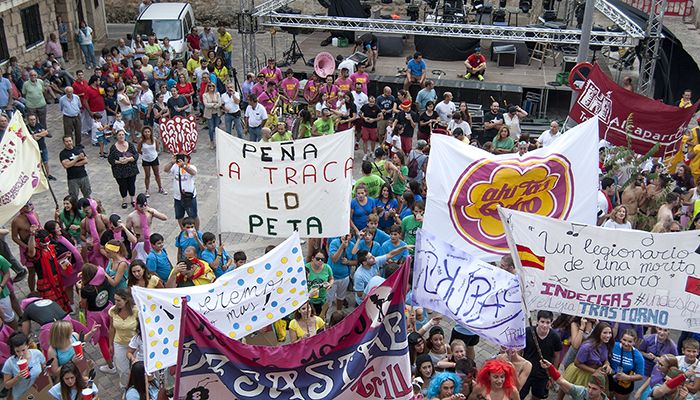 El concurso de disfraces fue otro de los hitos del programa festivo. A pesar de la tormenta previa y del cambio de ubicación, tanto las peñas como el público respondieron a los imprevistos con alegría y llenaron la plaza Mayor para disfrutar del espectáculo. Derroche de imaginación y, sobre todo, de humor, el que se vivió durante las casi dos horas de desfile de disfraces, primero de la categoría individual y parejas y posteriormente la de grupos, más numerosa. Una espectacular representación del sorteo de la lotería de Navidad, con calvo de la lotería y administración de Doña Manolita incluidos, realizada por la Peña El Trastorno y Las Indecisas, resultó merecedora del Primer Premio. El Segundo Premio fue para Ahí Tas Kedao y su divertida parodia de una receta televisiva de Karlos Arguiñano, mientras que Súper Ratón y su cuadrilla de ratoncillos de El Kaldero quedó en un también merecido tercer lugar. La Mejor Coreografía fue la de las Cheerleaders de la Peña El Límite.