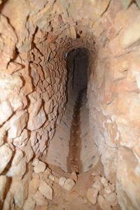 La escalera y el tramo que discurre hasta el pozo, así como probablemente el mismo pozo, datan de 1939-1940. Las obras fueron realizadas por los presos republicanos a los que se recluyo tras acabar la Guerra Civil en la Iglesia de San Pedro. Al ser de reciente construcción, no está claro si ese tramo se construyó sobre el del siglo XVI o si el manantial del pozo ya estaba canalizado por las galerías originales.