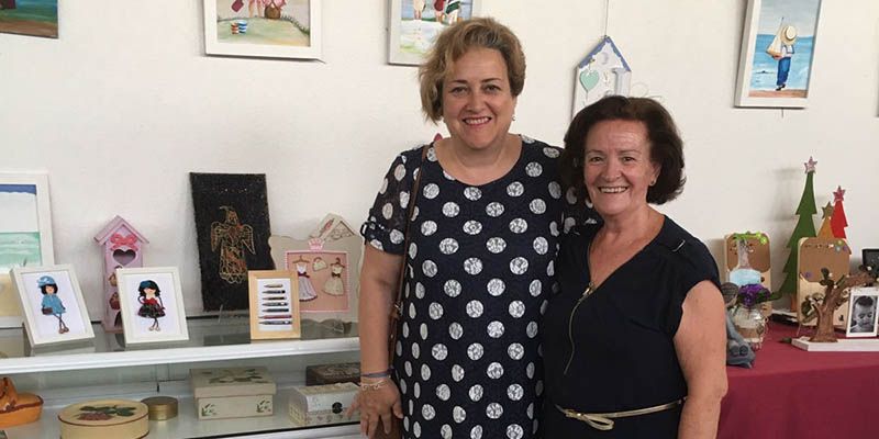María Isabel Teruel, profesora, y sus alumnas se muestran muy satisfechas por la excelente acogida que ha tenido su muestra entre los vecinos de Alovera.