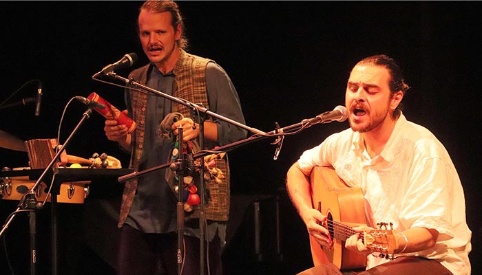 Club del Río llegó a Cabanillas en su formación reducida para formato acústico (la banda tiene 7 componentes de manera habitual, de los que se desplazaron tres hasta la Casa de la Cultura), y el resultado fue igualmente sorprendente y efectivo. Como «frontman», su vocalista y guitarra acústica Esteban de Bergia. Flanqueado por dos extraordinarios músicos, uno con guitarra eléctrica, Adriano Pezzi, virtuosísimo; y por otro lado el absolutamente impresionante percusionista y voz de coros Juan Espiga.