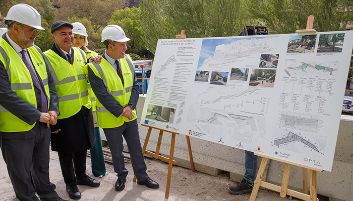 El presidente de Castilla-La Mancha, Emiliano García-Page, ha visitado junto con el vicepresidente primero, José Luis Martínez Guijarro; el consejero de Fomento Nacho Hernando; y el alcalde de Cuenca, Darío Dolz, las obras que se están realizando dentro del proyecto de movilidad sostenible mediante conexión accesible al casco urbano histórico de Cuenca.