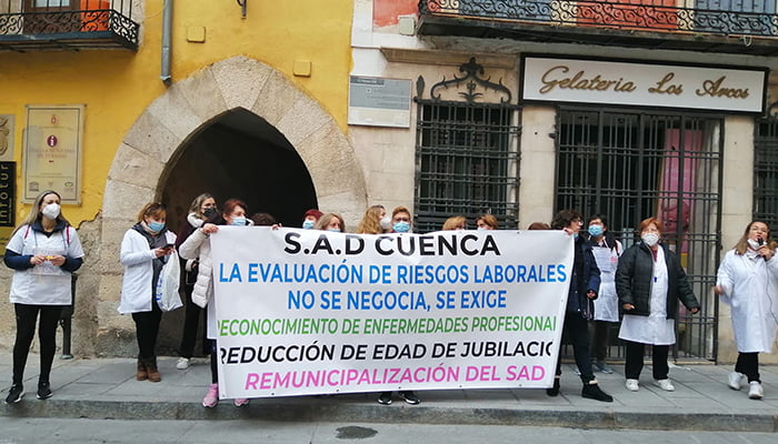 Las representantes sindicales del Servicio de Ayuda a Domicilio del Ayuntamiento de Cuenca denuncian una “situación límite” respecto al servicio “que está dando lugar a que haya usuarios sin atender”. Las trabajadoras han relatado que la oficina de coordinación de la empresa prestataria del servicio, Aralia, cerrará hasta nuevo aviso por lo que les imposible “cubrir bajas, solicitar permisos o cambios” y que la situación hace que los usuarios del servicio “llamen a la empresa o a servicios sociales del Ayuntamiento sin obtener respuestas”.